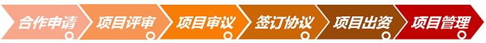 合作伙伴向中葡基金推荐投资项目,并表达合作意向。中葡基金首先对推荐项目进行筛选,并将潜在项目机会放入储备库。中葡基金将根据入库项目进展及资料完善程度,对条件相对成熟的项目立项,开展尽职调查工作,编写项目投审报告,提交项目审议决策。对于决策通过的项目,与合作伙伴签署投资协议。中葡基金根据协议内容,完成资金拨付,项目进入运营和资产管理阶段,中葡基金将根据投资协议规定时间和条件完成退出,实现投资收益。