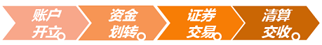 个人客户可持相关证件通过网上、手机或到国开证券营业部现场办理账户开立业务。机构客户可委托代理人持相关证件至国开证券营业部现场办理账户开立业务。客户账户开立成功后需连通三方存管银行再进行银证转账。开市时间,客户可以通过国开证券交易软件进行网上交易或手机交易,也可以通过电话委托或到营业部现场进行证券交易。交易完成后,国开证券按照清算规则为客户进行资金股份清算,清算完成后实现客户证券和价款的清算交收。
