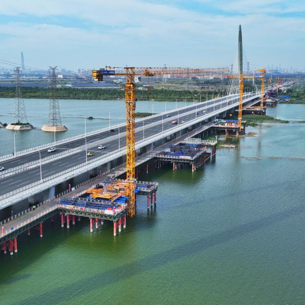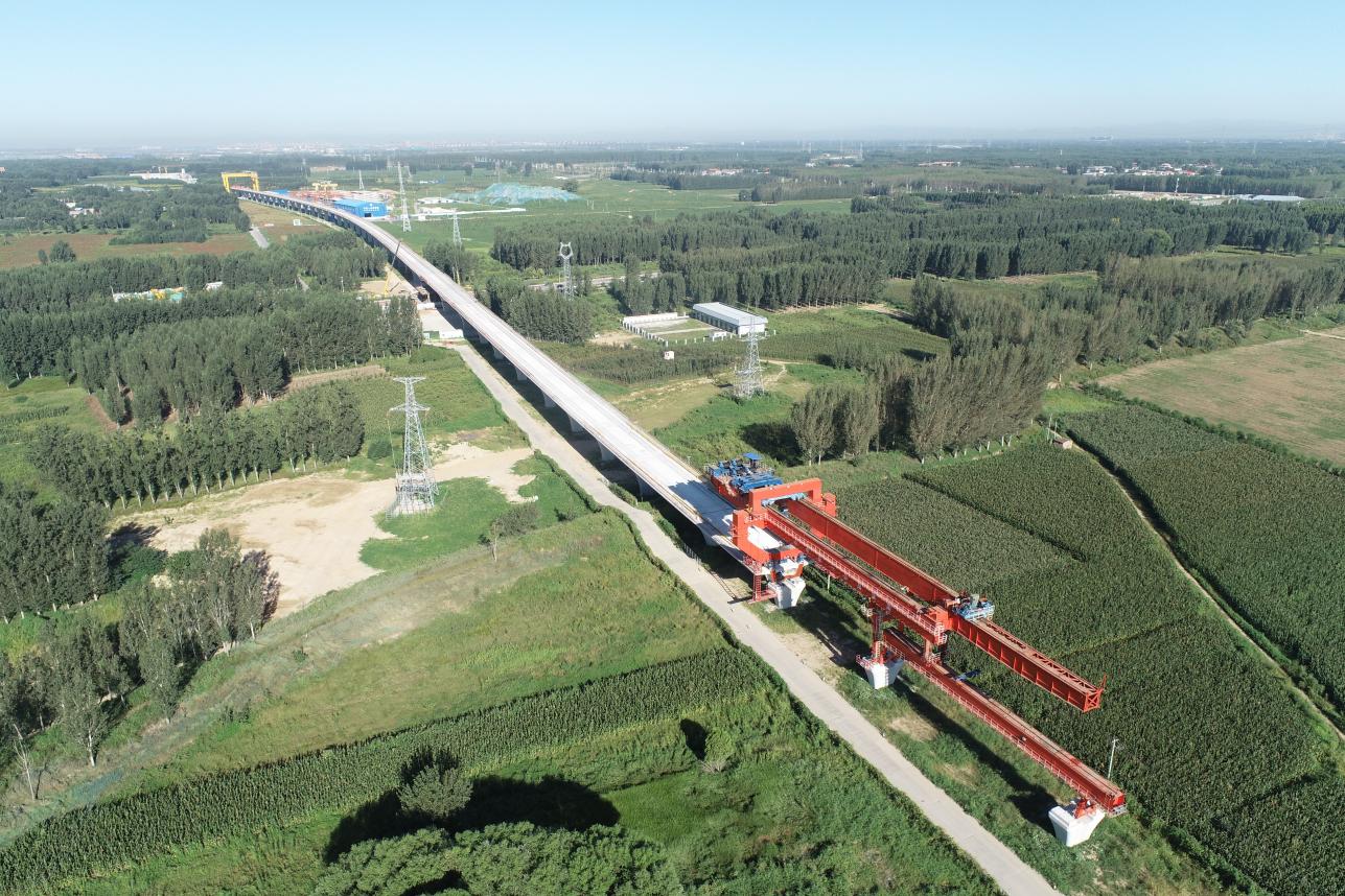 津静市域(郊)铁路首开段关键控制工程——跨独流减河大桥工程施工现场