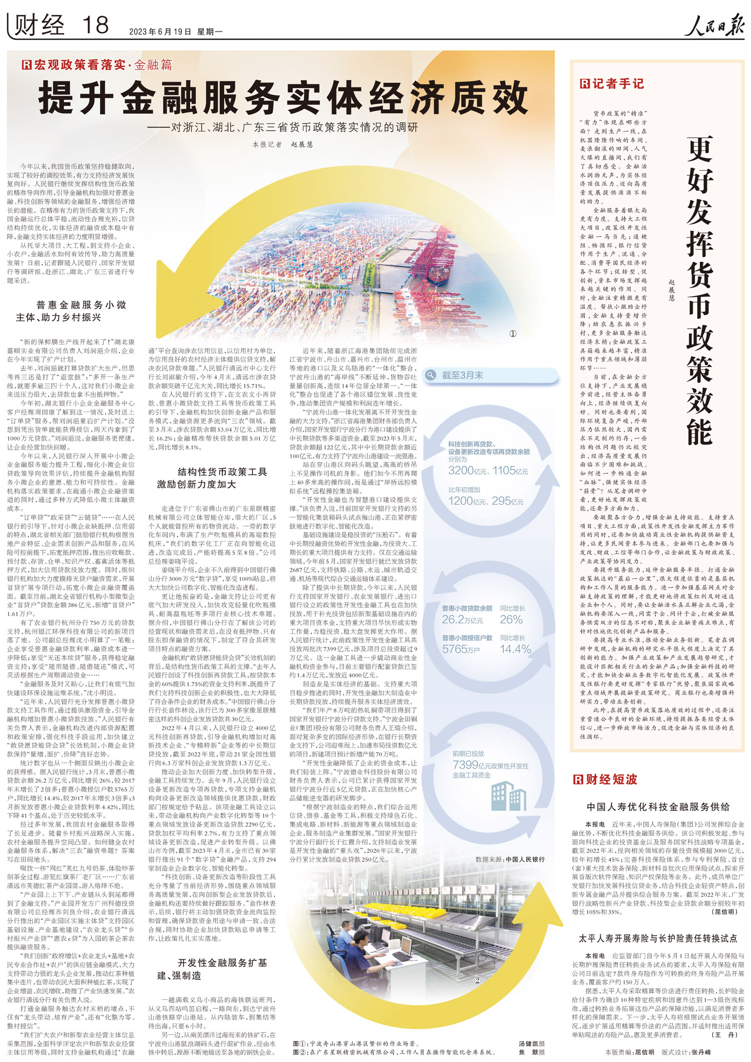 6月19日,《人民日报》以《提升金融服务实体经济质效》为题,刊发对浙江、湖北、广东三省货币政策落实情况的调研报道。其中,以开发银行支持宁波基础设施建设和制造业发展为典型案例,对开发银行发挥开发性金融作用,服务扩基建、强制造情况进行了报道。