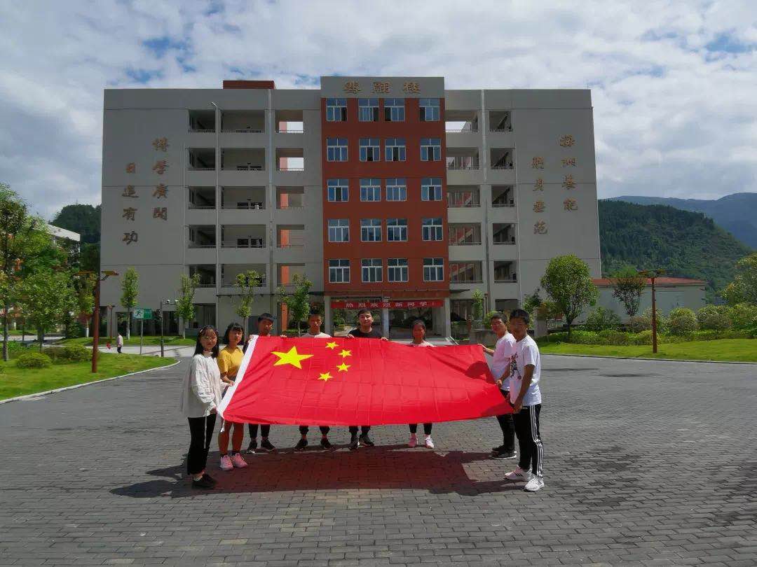 分行扶贫专员李晓帆同志在开行贷款支持的武隆中学和优秀学生代表一起与国旗合影,共祝伟大祖国繁荣昌盛!