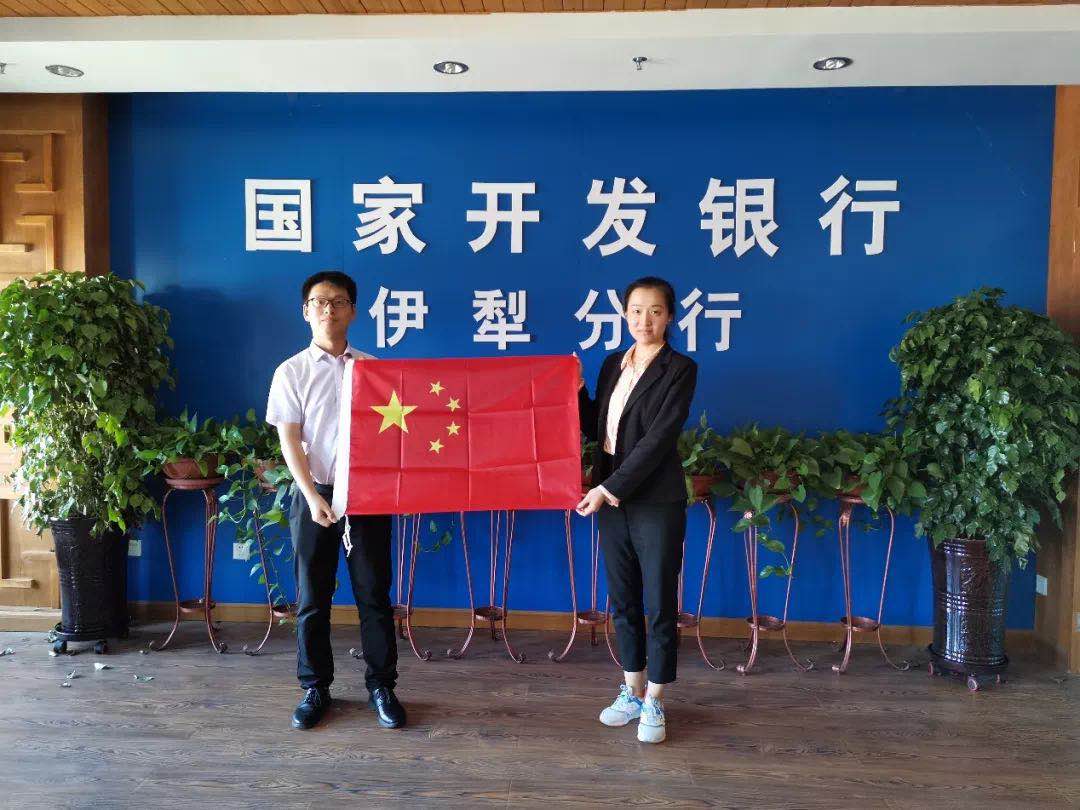 伊犁分行在日常工作场所、喀什分行赴喀什市人民广场与国旗合影拍照。进一步增强了新员工的爱国热情,激发了新员工参与开发性金融在新疆实践发展的昂扬斗志。新员工们纷纷表示,今后将积极服务国家战略,认真落实中央治疆方略,主动承担金融戍边责任使命,为新疆社会稳定和长治久安、为实现“两个一百年”奋斗目标、为中华民族伟大复兴的中国梦而不懈奋斗!